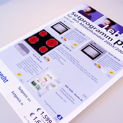 Das Erstellen der Verkaufsunterlagen unterliegt den strengen internationalen Corporate Design Richtlinien. Für Whirlpool Austria werden die Drucksorten laufend adaptiert. Bildmaterial wird vom Kunden beigestellt. |