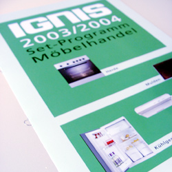 Das Erstellen der Verkaufsunterlagen unterliegt den strengen internationalen Corporate Design Richtlinien. Für Ignis Austria werden die Drucksorten laufend adaptiert. Bildmaterial wird vom Kunden beigestellt. |